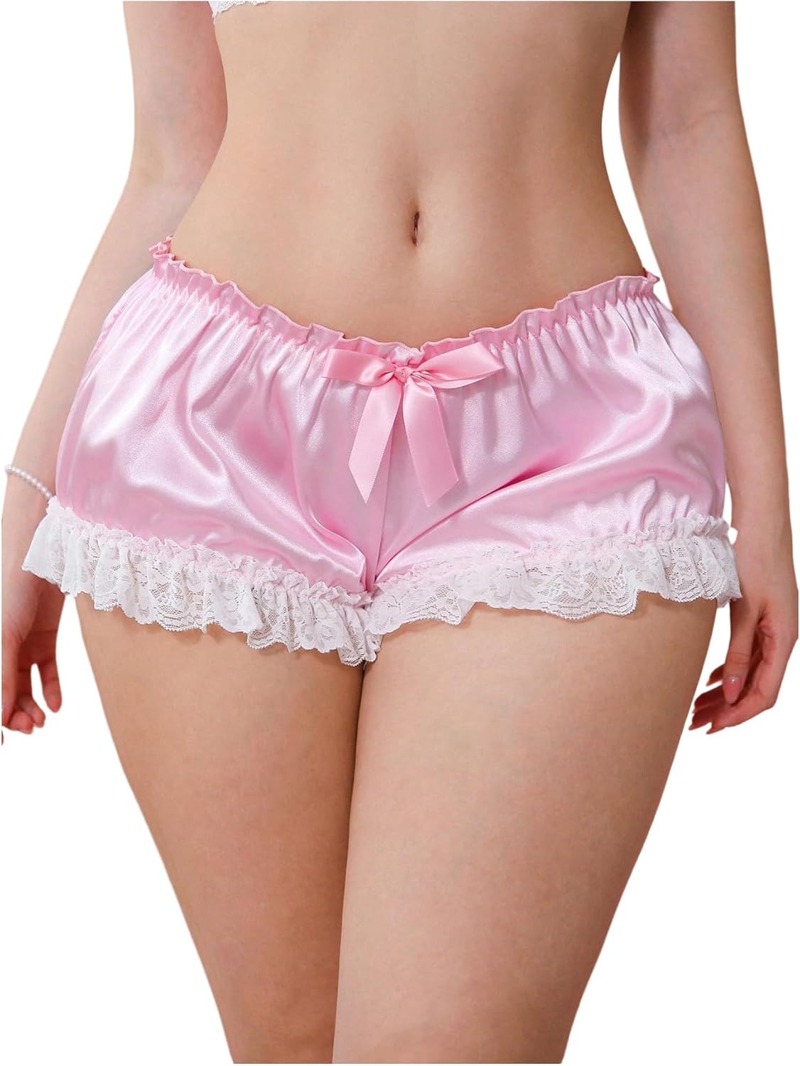 SHENHE Women's Satin Lace Trim Underwear Low Rise Ruched Coquette Silky Boyshorts Panties
