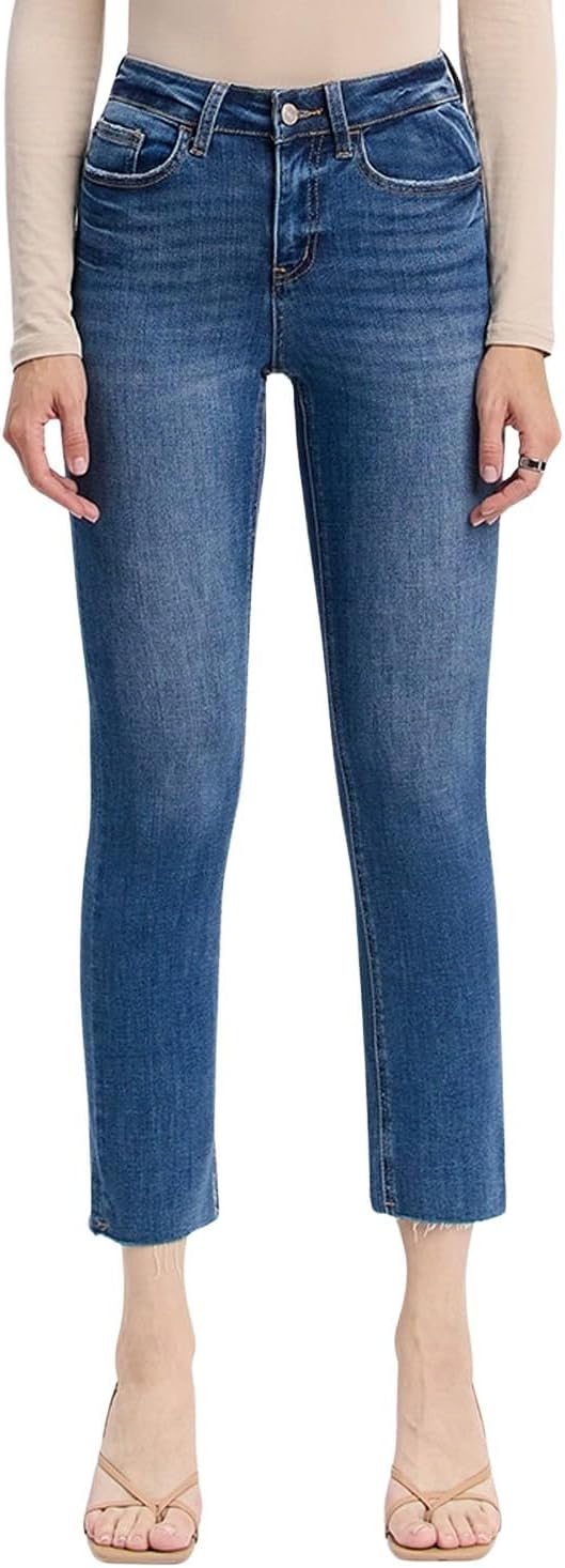 Women's High-Rise Raw Hem Slim Straight Jeans