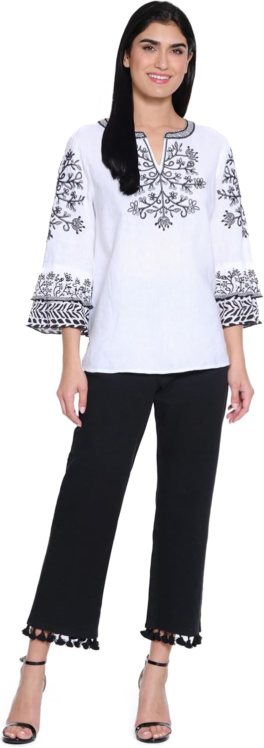 John Mark Womens Five-Pocket Pant with Tassel Trim Hem