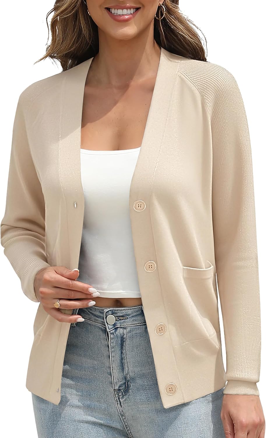 Urban CoCo Women's Classic Open Front Cardigan Sweaters Long Sleeve Button Down Knit Sweater
