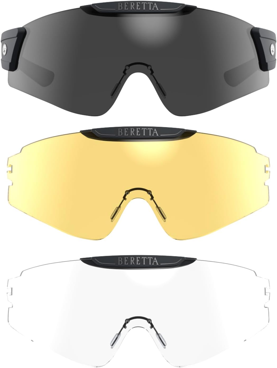 Beretta Intermask Wraparound Design Adjustable Protective Shooting Eyeglasses with Interchangeable Lenses (3 Colors per Pack)