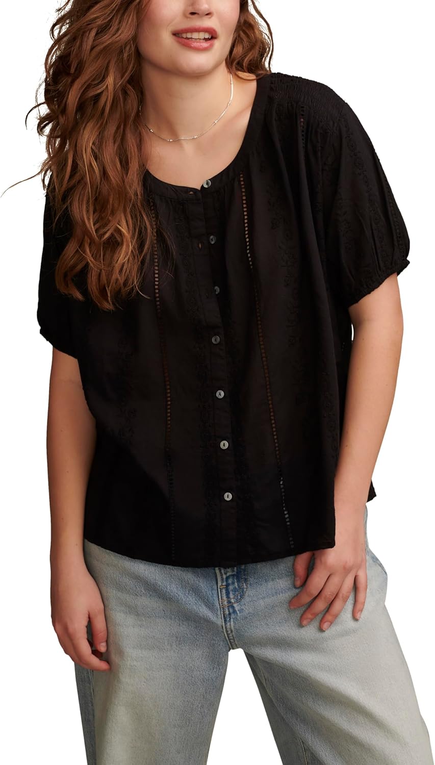 Lucky Brand Womens Lucky Brand Women's Solid Smocked Shoulder Blouse