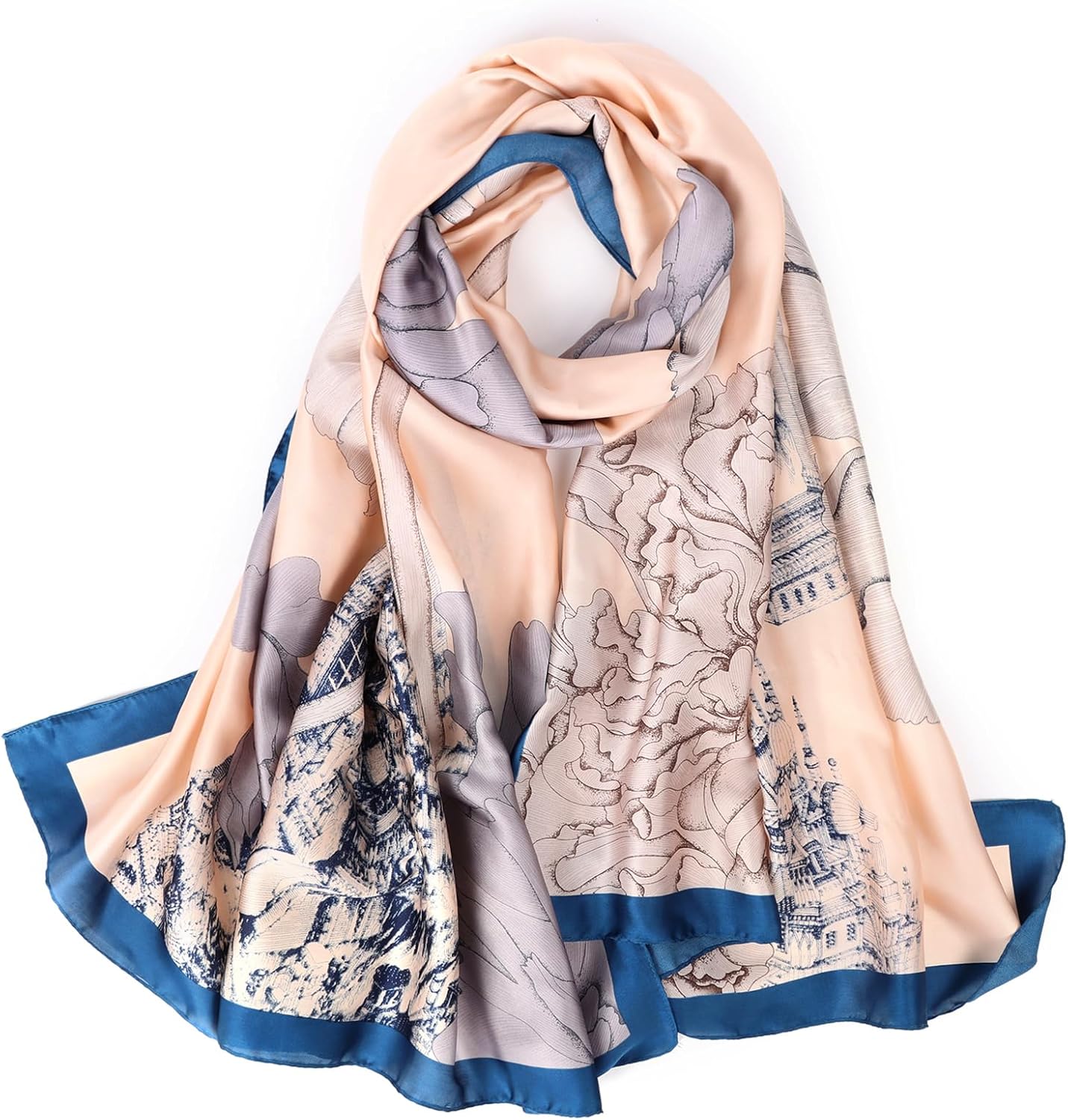 Bestshe Silk Feeling Long Scarf Fashion Floral Large Scarf Satin Shawl Wraps for Women with Gift Packed