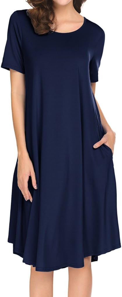Locryz Women's Short Sleeve Pocket Swing Midi Dress Casual Loose T-Shirt Dresses