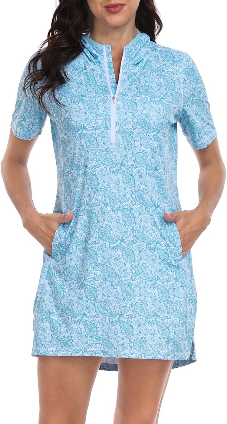 HDE Women's Short Sleeve Beach Coverup Dress with Hood UPF 50 Swim Cover Up