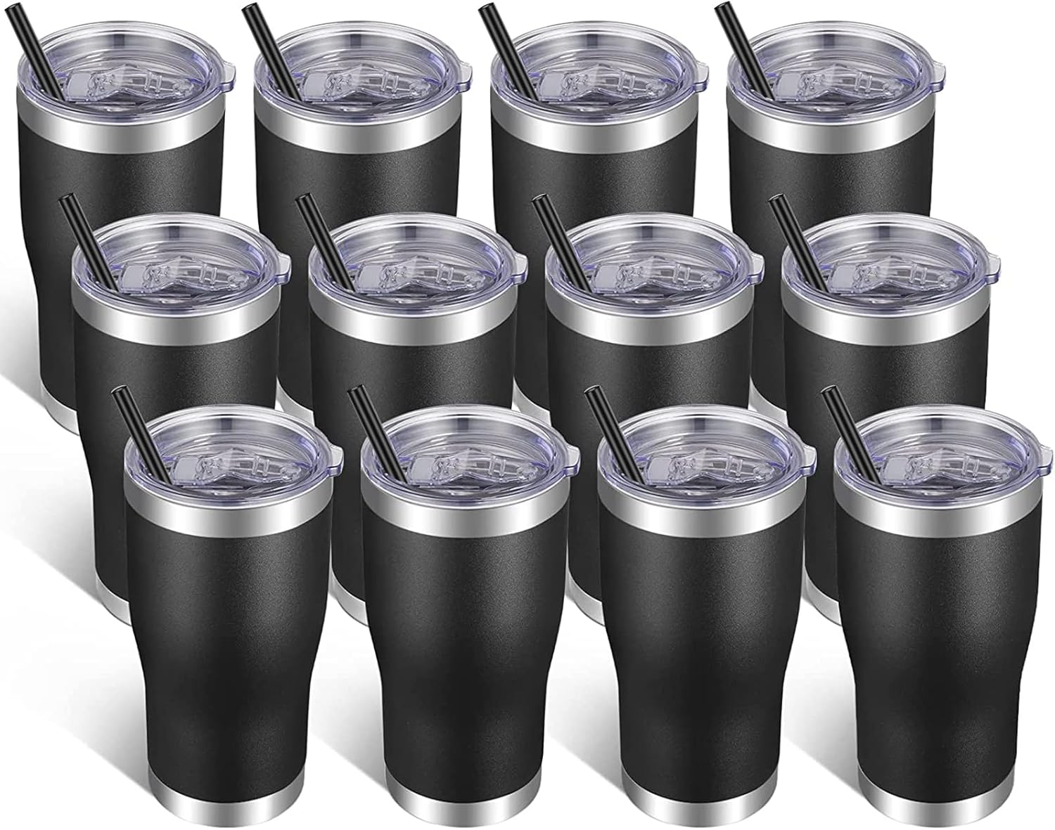 VEGOND 20oz Tumbler Stainless Steel Tumbler Cup with Lid And Straw Vacuum Insulated Double Wall Travel Coffee Mug(Black 12 Pack)