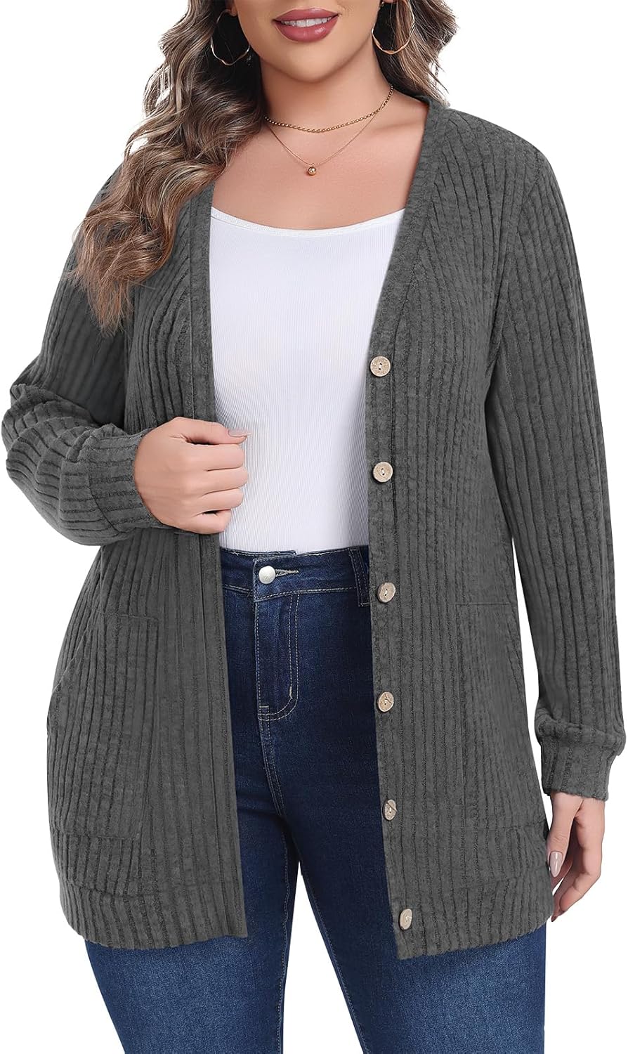 Lastshe Women's Plus Size Cardigan Sweaters Button Down Long Sleeve Fall Cardigans Knit Outwear with Pockets