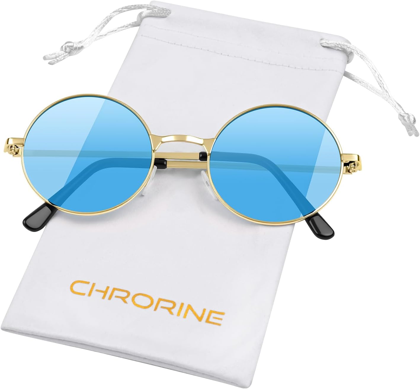 CHRORINE Hippie Sunglasses Round 70s Retro Glasses for Women Men Party Accessory Festival Fashion Vintage Sunglasses