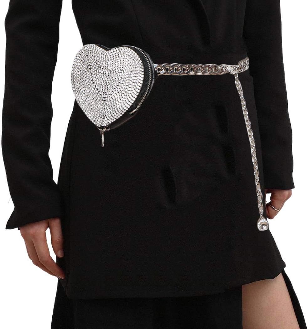 - Glitter Waist Bag: So cool and trendy. Especially chunky cuban link waist chain combined with crystal heart bag which can be used a fanny pack or crossbody bag, adding more novelty sense.