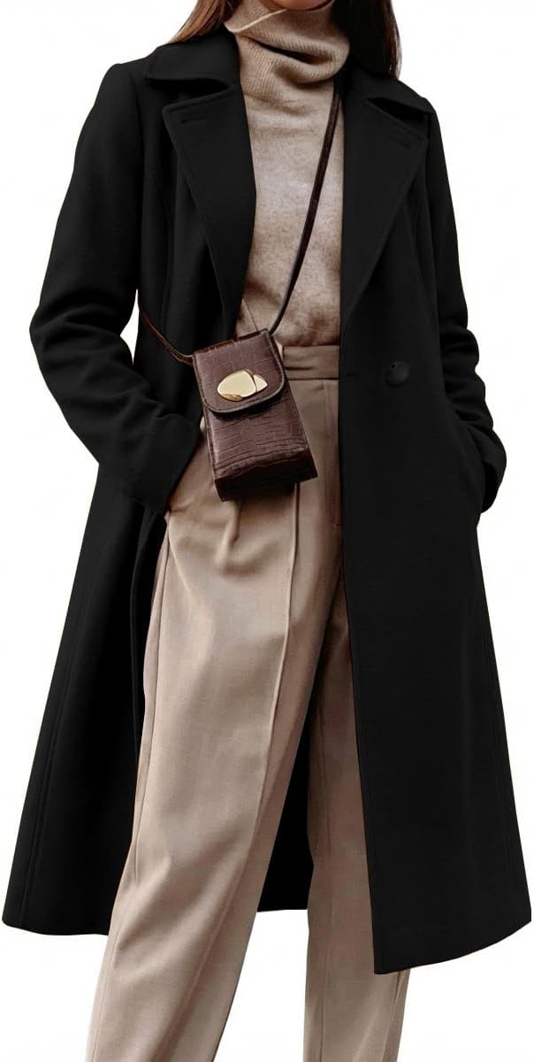 IDEALSANXUN Long Wool Coats for Women Double Breasted Vintage Fall Winter Pea Coat Jackets