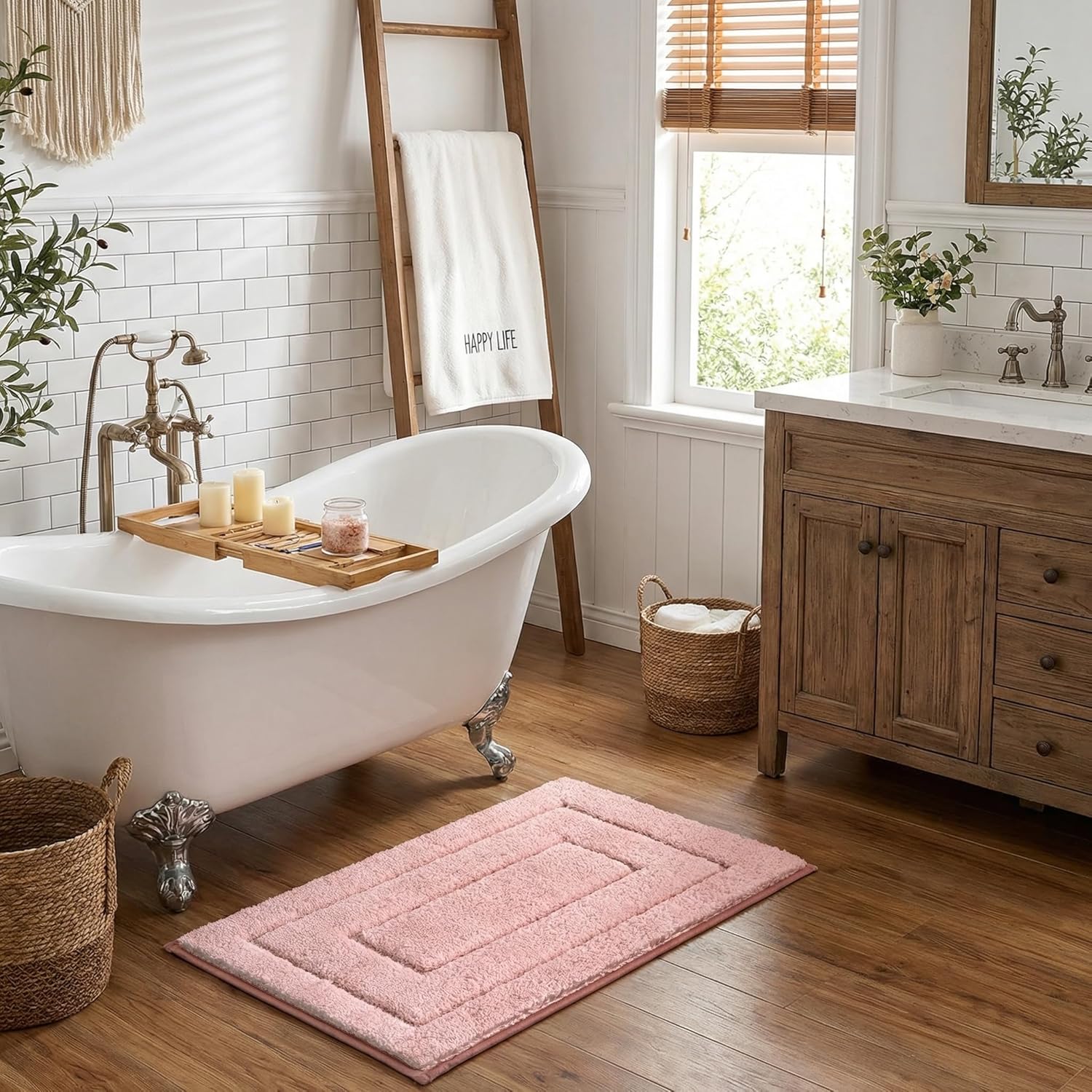 GRANNY SAYS Pink Bathroom Rugs Non Slip Washable, 16x 24, Soft Bath Mats for Bath, Microfiber Shag Rug, Absorbent Bath Floor Mat, Small Bathroom Rug for Shower, Tub, Bedroom