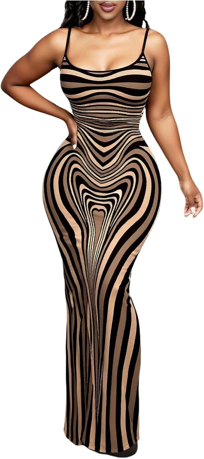 SOLY HUX Women's Striped Maxi Dress Spaghetti Strap Bodycon Going Out Long Dresses