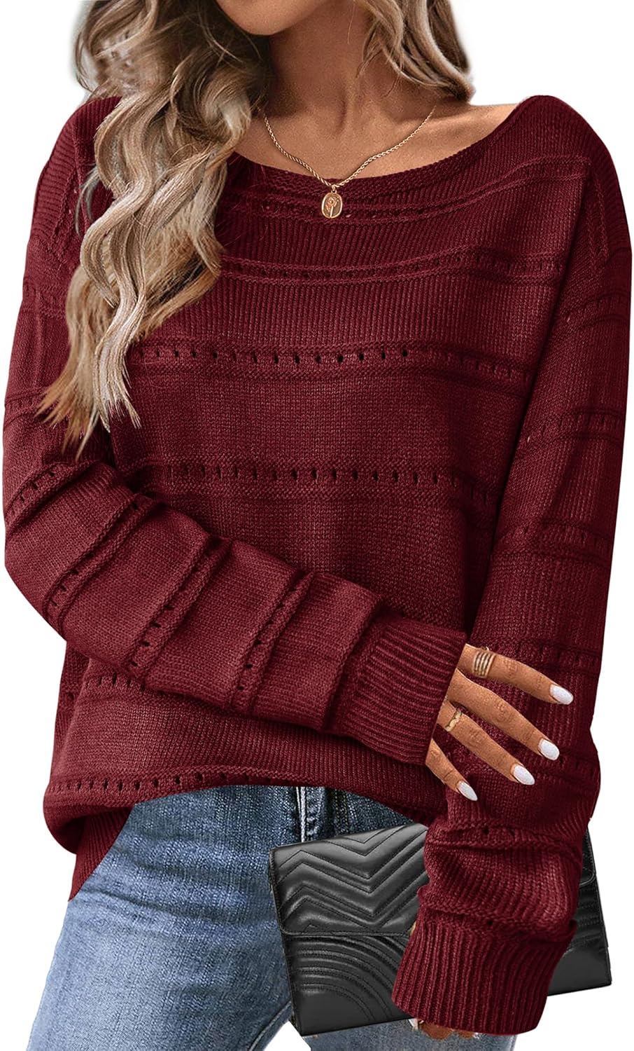 Zeagoo Womens Sweaters Cute Long Sleeve Off The Shoulder Pullover Tops Hollow Out Crochet Dressy Casual Outfits