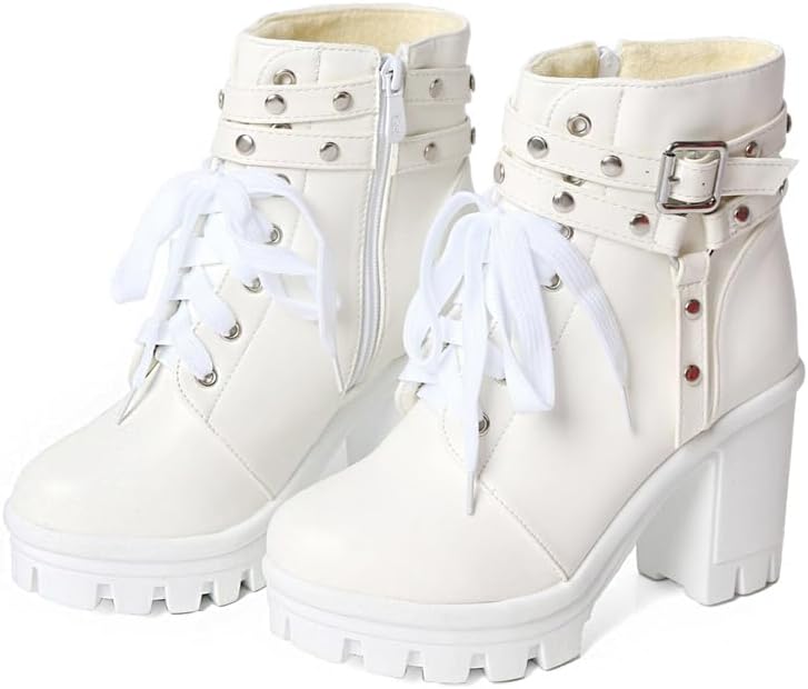 Platform Boots For Women Black Chunky Boot Goth Ankle Booties Bead Lace Lolita Dress Shoes With Zipper