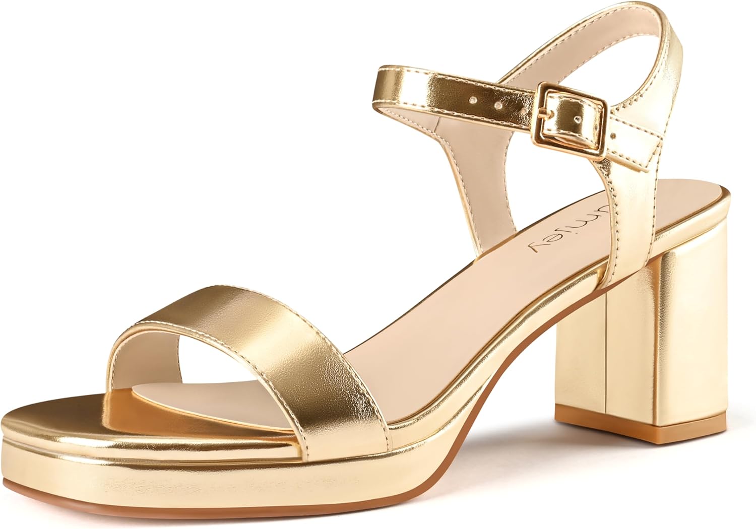 Platform Heels for Women Square Open Toe Block Chunky Heel Sandals with Buckle Ankle Strap Prom Party Wedding Dress Pumps