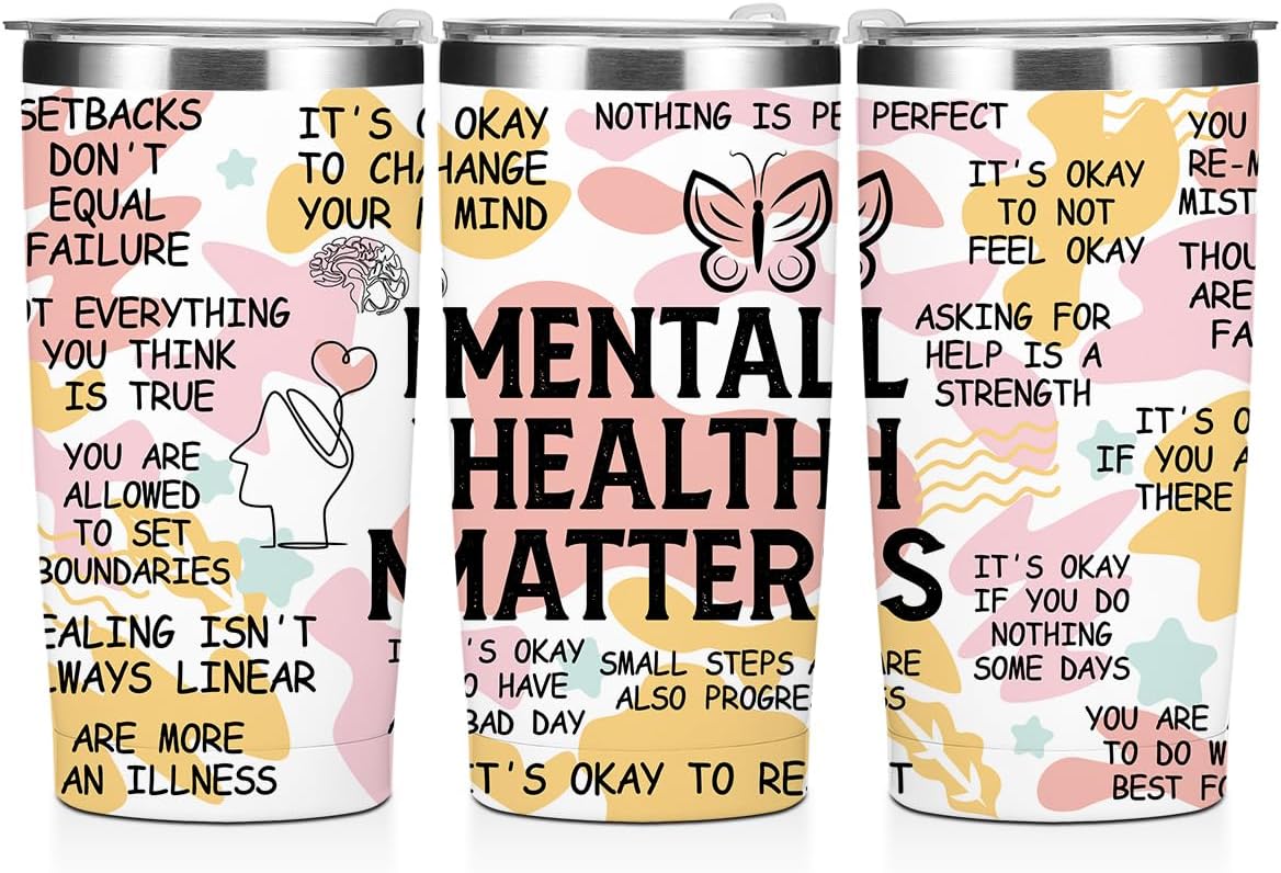Mental Health 20 oz Tumbler Travel Cup, Positive Quotes Mental Health Gifts Coffee Tumbler with Lid Insulated Tumblers, Coffee Cups for Cold Hot Drinks Therapist Gifts for Mom Besties Women