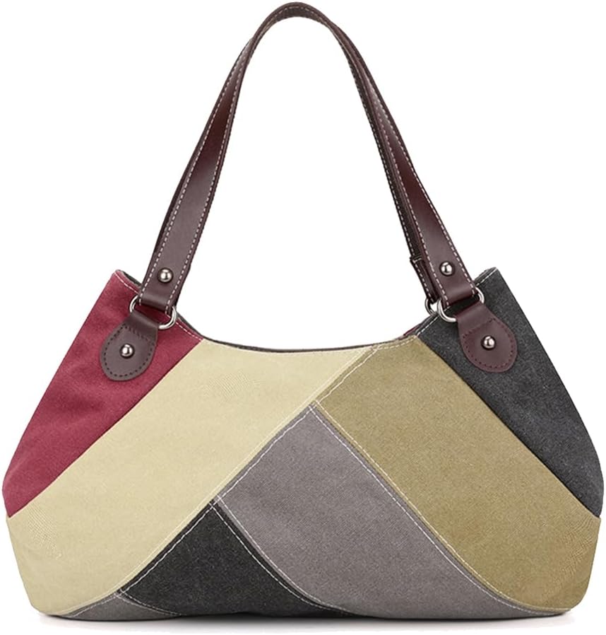 Women Handbag Multi-Color Splice Striped Shoulder Bag Canvas Tote Bag Large Capacity Top Handle Bag Casual Hobo Bag