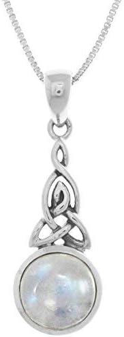 Jewelry Trends Celtic Trinity Knot with Round Moonstone Gem Sterling Silver Pendant Necklace 18"