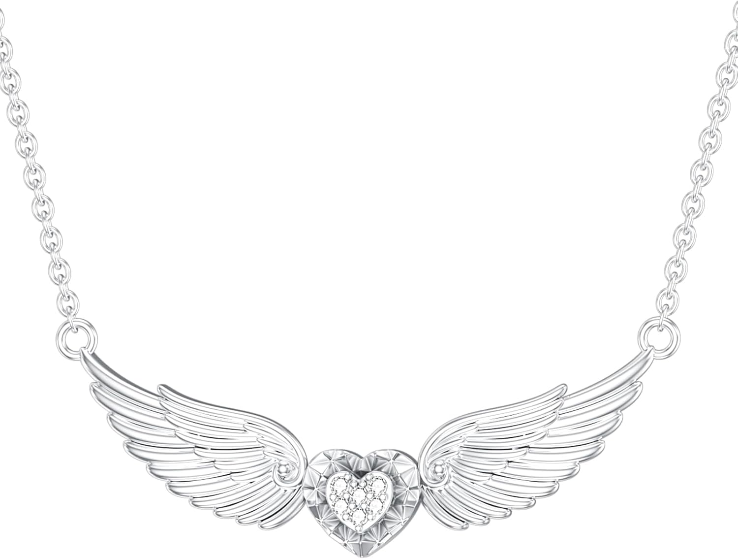 Diamond Angel Wing Necklace for Women - Sterling Silver Heart Pendant - Jewelry Gifts for Mom Wife
