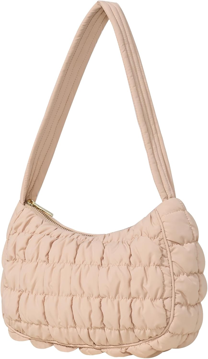 Small Quilted Shoulder Handbag Crescent Puffer Purse for Women Hobo Every Day Clutch