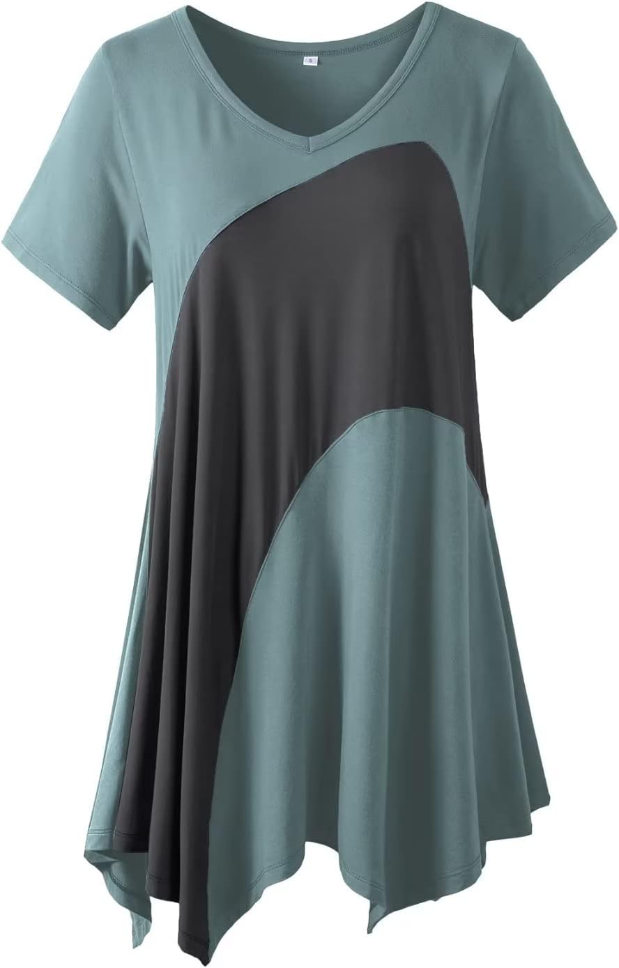LARACE Plus Size Tops for Women V Neck Summer Shirt Short Sleeve Blouses Patchwork Tunics