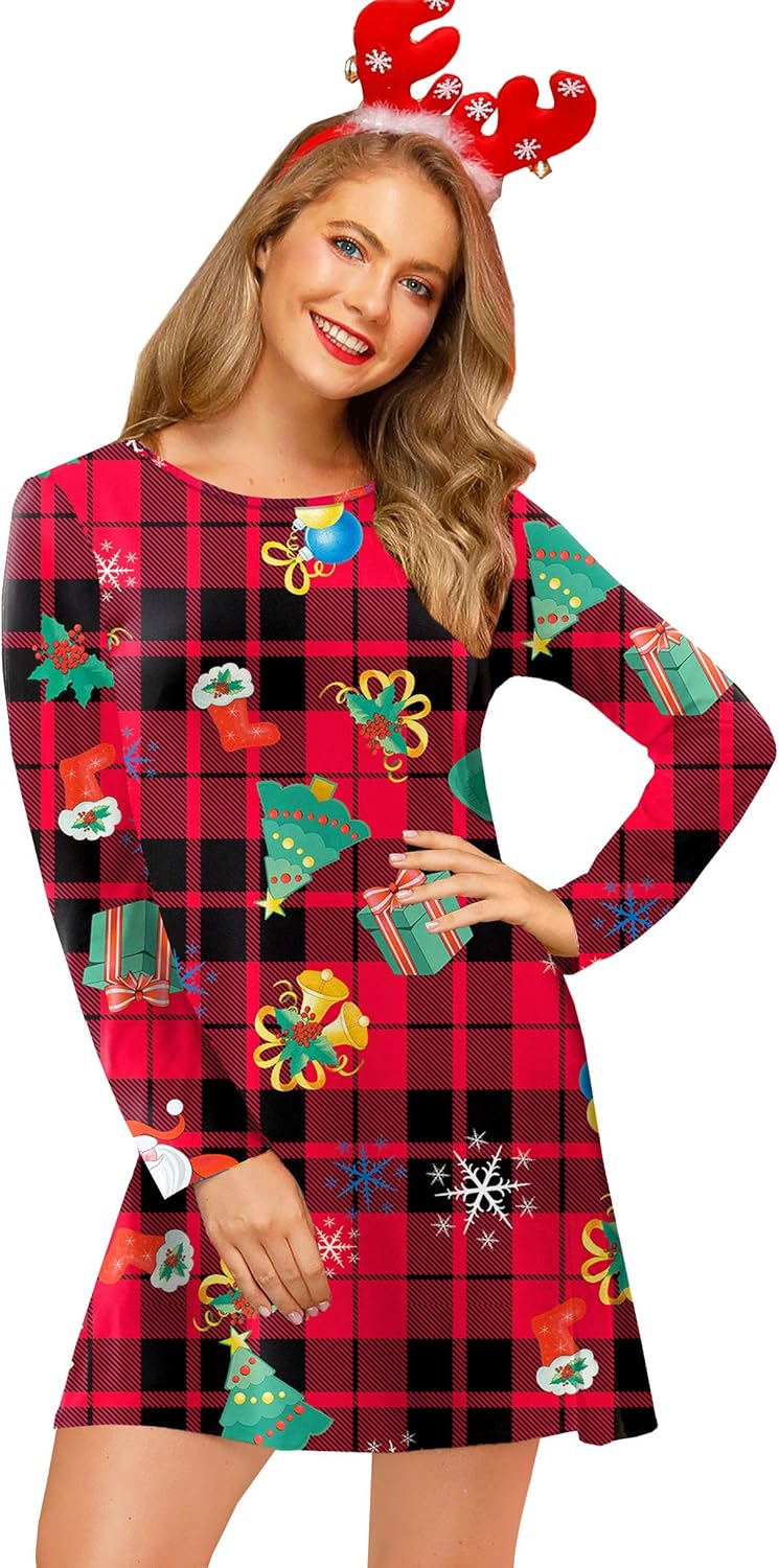 For G and PL Women's Christmas Printed Tunic Dress Long Sleeve Crewneck Casual Costume