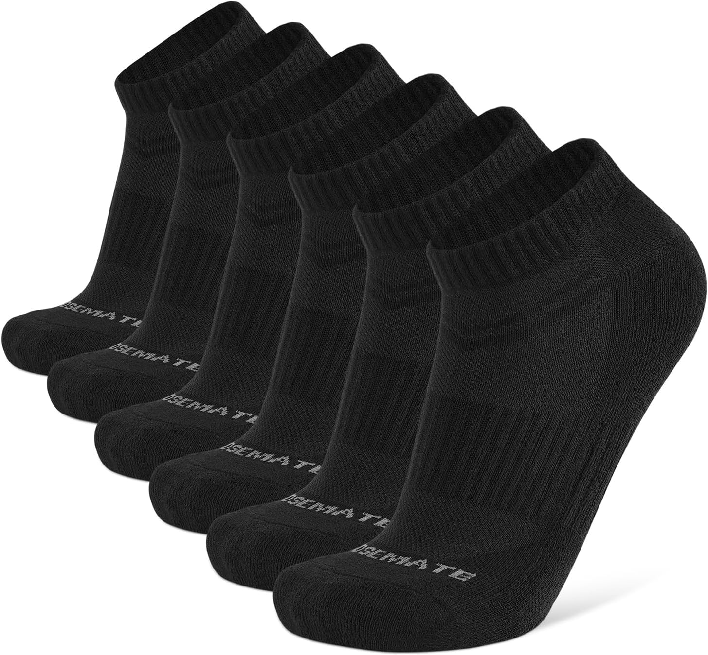 CLOSEMATE Athletic Ankle Socks for Men Women Soft Cotton Cushioned Non Slip and Breathable for Running 6 Pairs