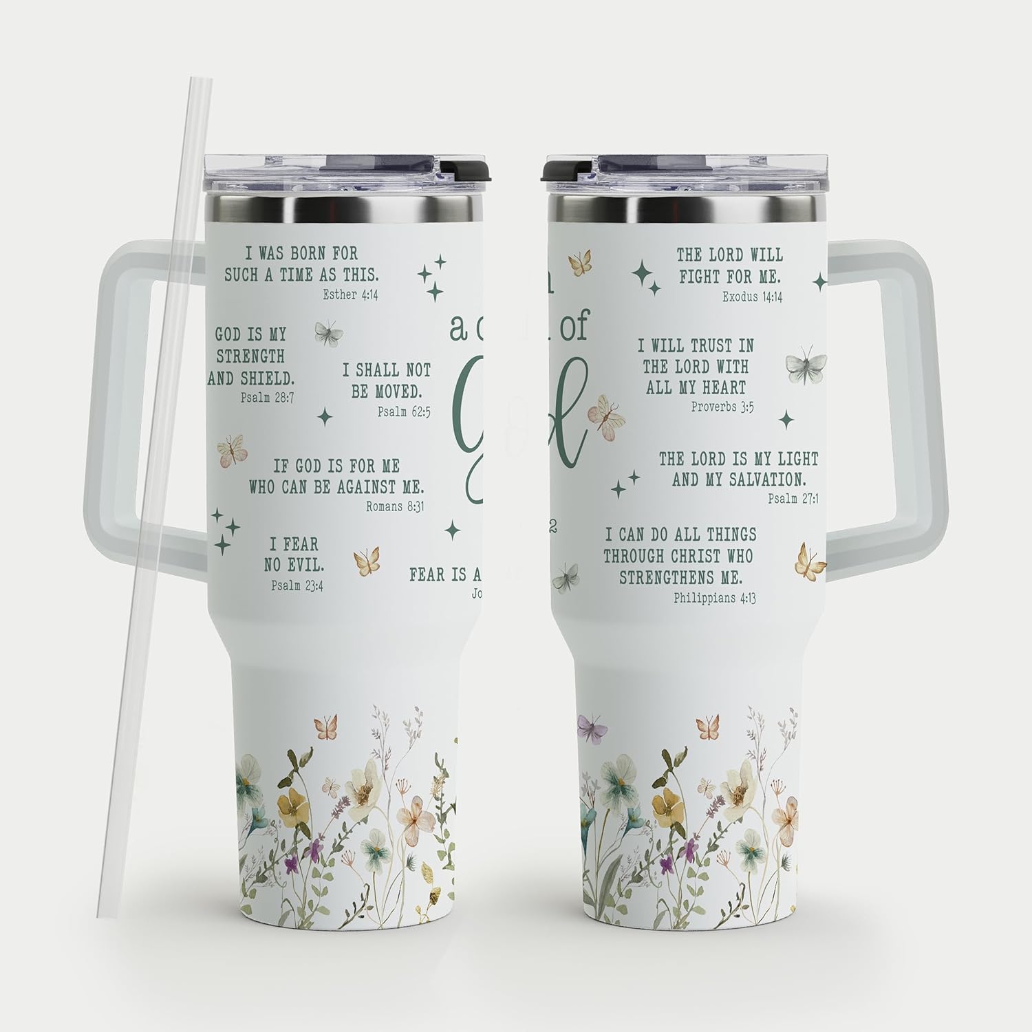 Christian Tumbler - Gifts for Christian Women - Bible Emergency Tumber - Motivational Coffee Tumbler - Gift Ideas for Christian Women, Friend, Coworkers - I Am A Child of God 40oz Tumbler with Handle