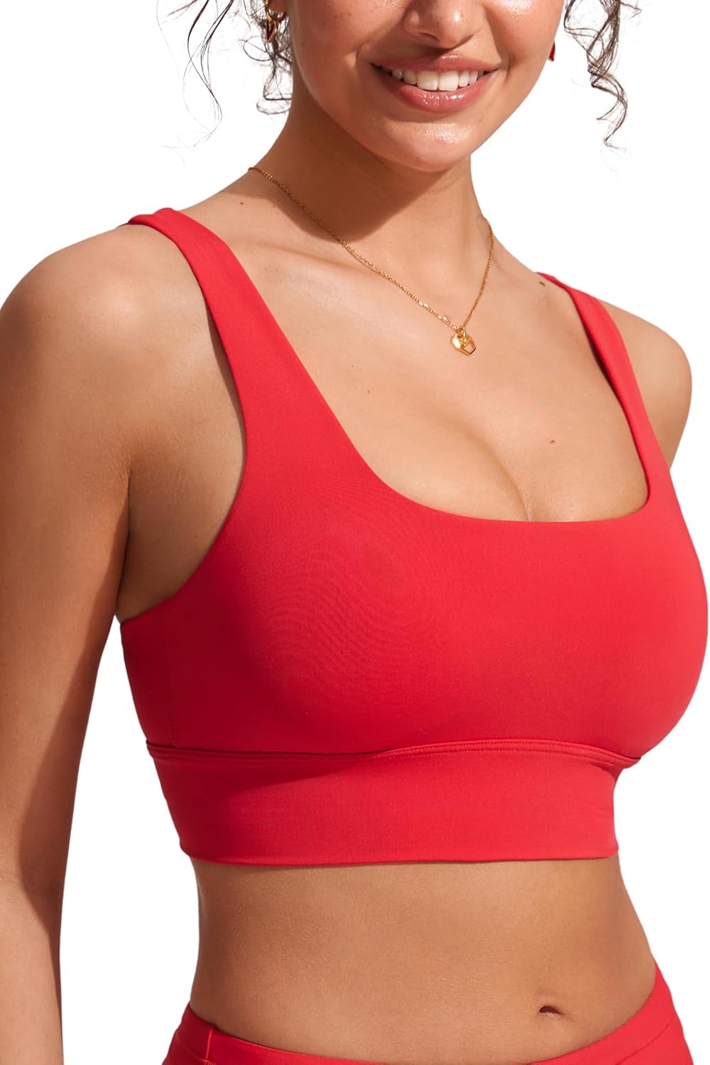 CRZ YOGA Scoop Neck Longline Bikini Tops for Women - Padded Wide Straps Modest Swimsuit Bathing Suit Sports Bra