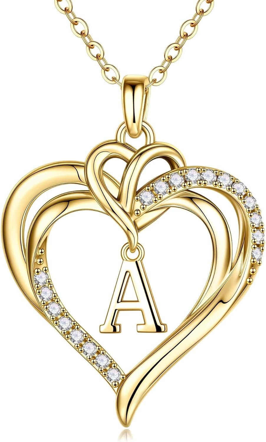 MONOOC Heart Initial Necklace for Women Teen Girls - Dainty 14K-Gold-Plated CZ Initial Necklaces for Women Heart Necklaces Jewelry for Woman Anniversary Birthday Gifts for Wife Mom Sister