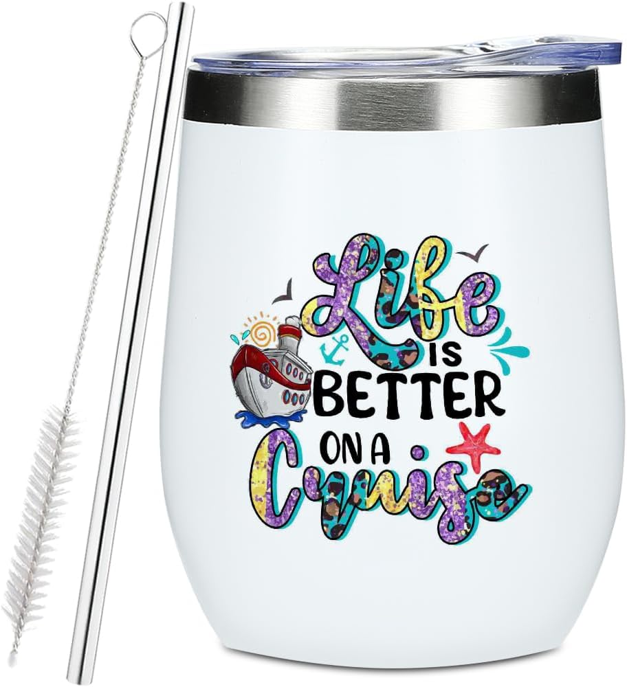 Funny Cruise Gifts Wine Tumbler, 12 oz Tumbler, Insulated Wine Glass Travel Coffee Mug,Cruise and Vacation Essentials Gift for Women Men Friend Girls Trip Bachelorette Party Christmas Halloween