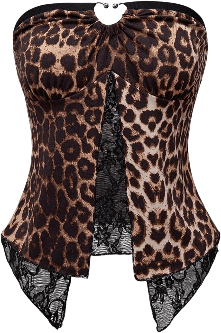 Milumia Women's Y2k Leopard Print Tube Top Contrast Lace Sheer Party Bandeau Tops