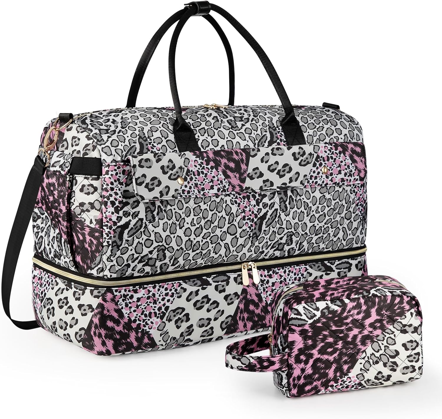 Wedama Weekender Bag for Women, Large Travel Duffel bag with Shoe Compartment, Carry on Overnight with Toiletry Makeup Bag for Travel Gym Camping Hospital, Leopard Print