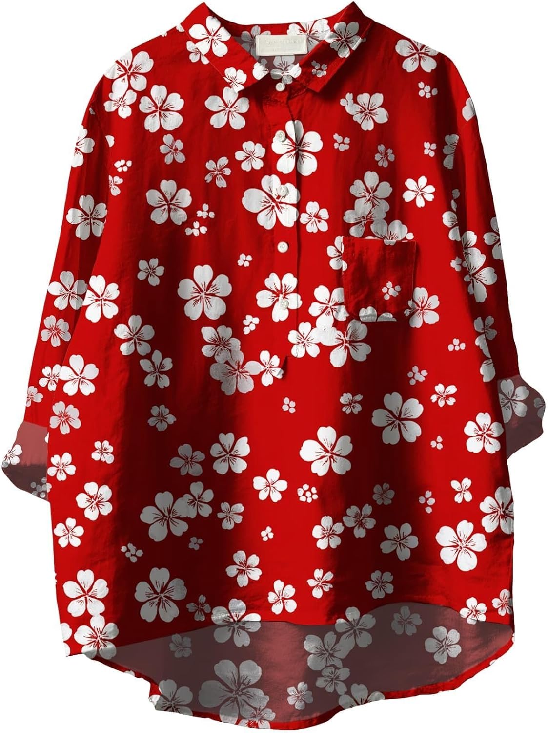 ZOCANIA Women's Button Down Shirts Printed Graphic Floral Shirt for Women Collared Long Sleeve Blouses with Pocket