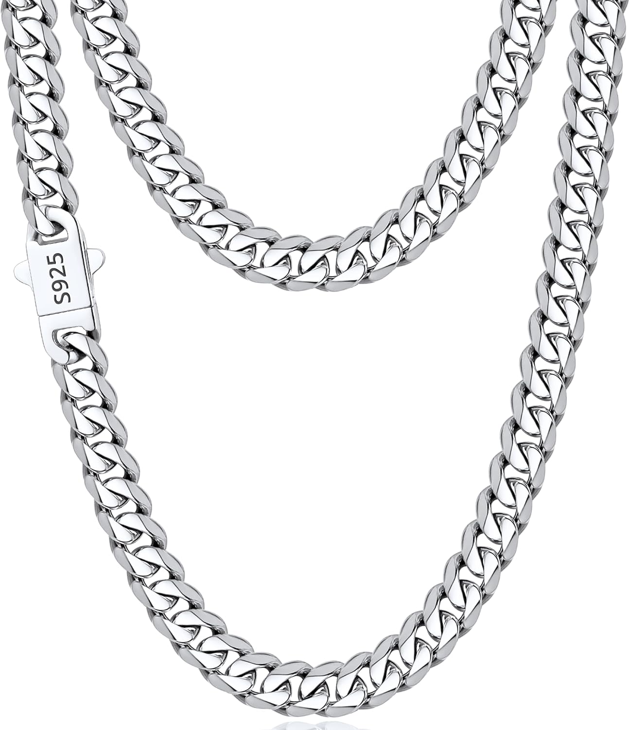 Italian 7mm Real 925 Sterling Silver Miami Cuban Link Chain Necklace for Men Boys, 18K Gold /925 Sterling Silver Chain Necklace for Men - Jewelry Gifts for Man 18 20 22 24 26 Inch
