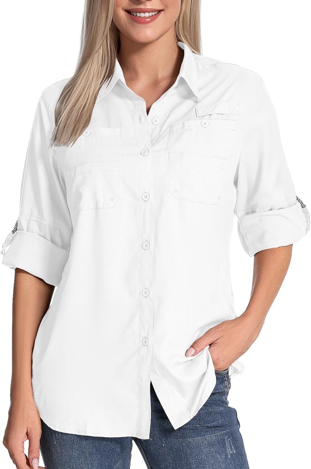 Womens Long Sleeve Sun Protection Hiking Fishing Shirts UPF 50+ UV Lightweight Quick-Dry Safari Shirts Womens Outdoor