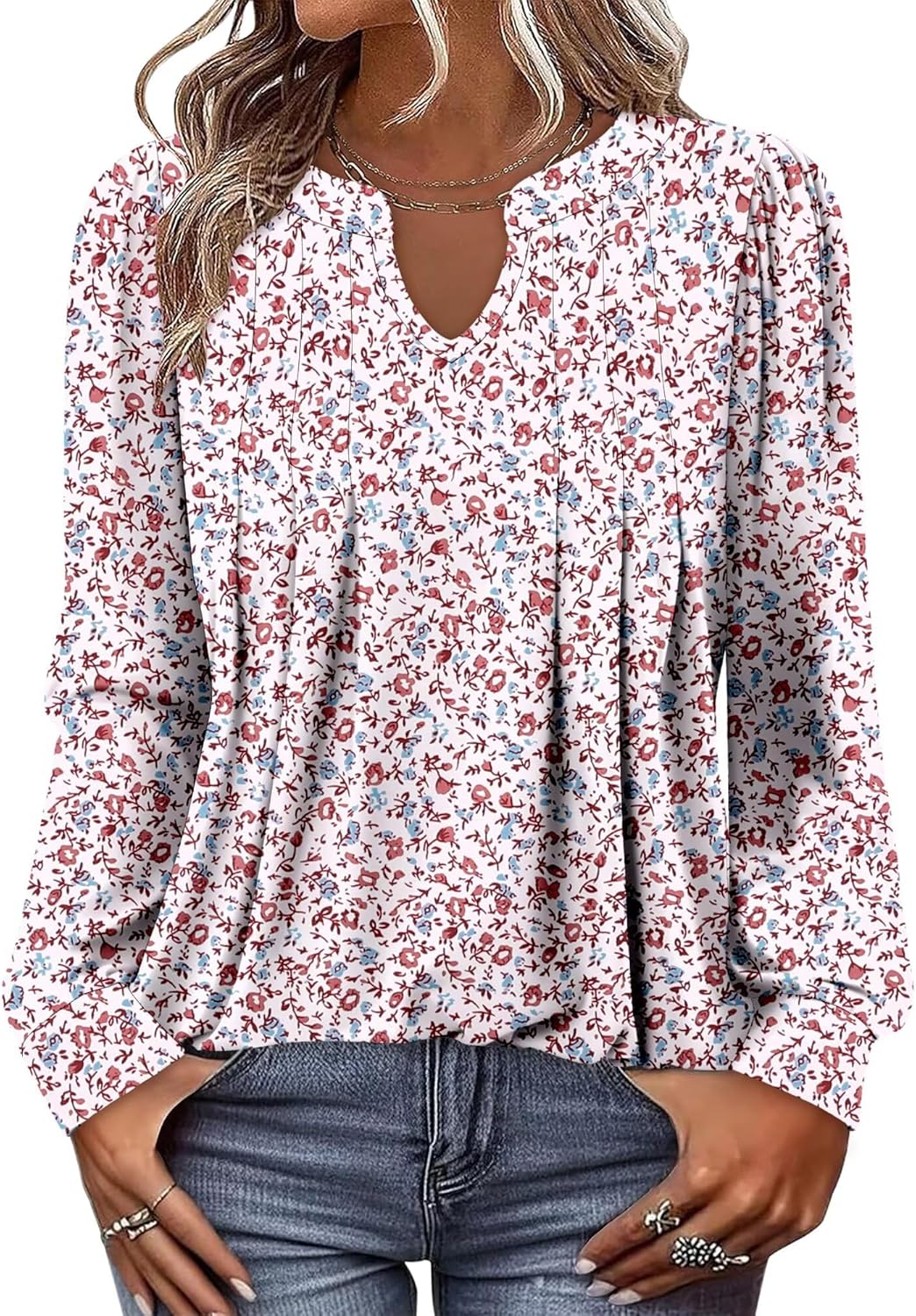 ONLYSHE Women Long Sleeve Shirts Ladies Floral Tops Fall Clothing
