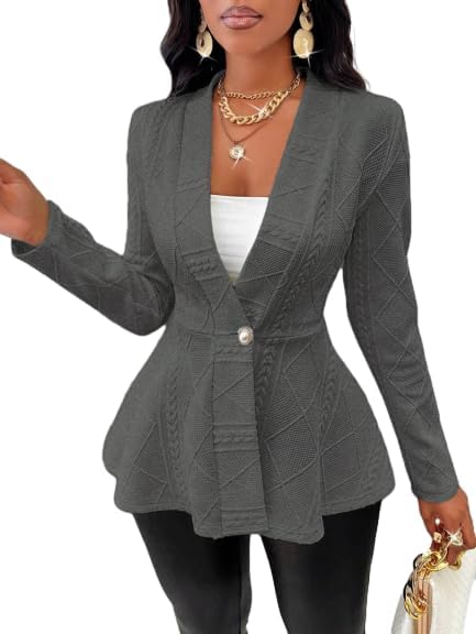 SKAYS Blazers for Women Business Casual Long Sleeve Solid Blazers & Suit Jackets Office Button Knit Cardigan Gray XL