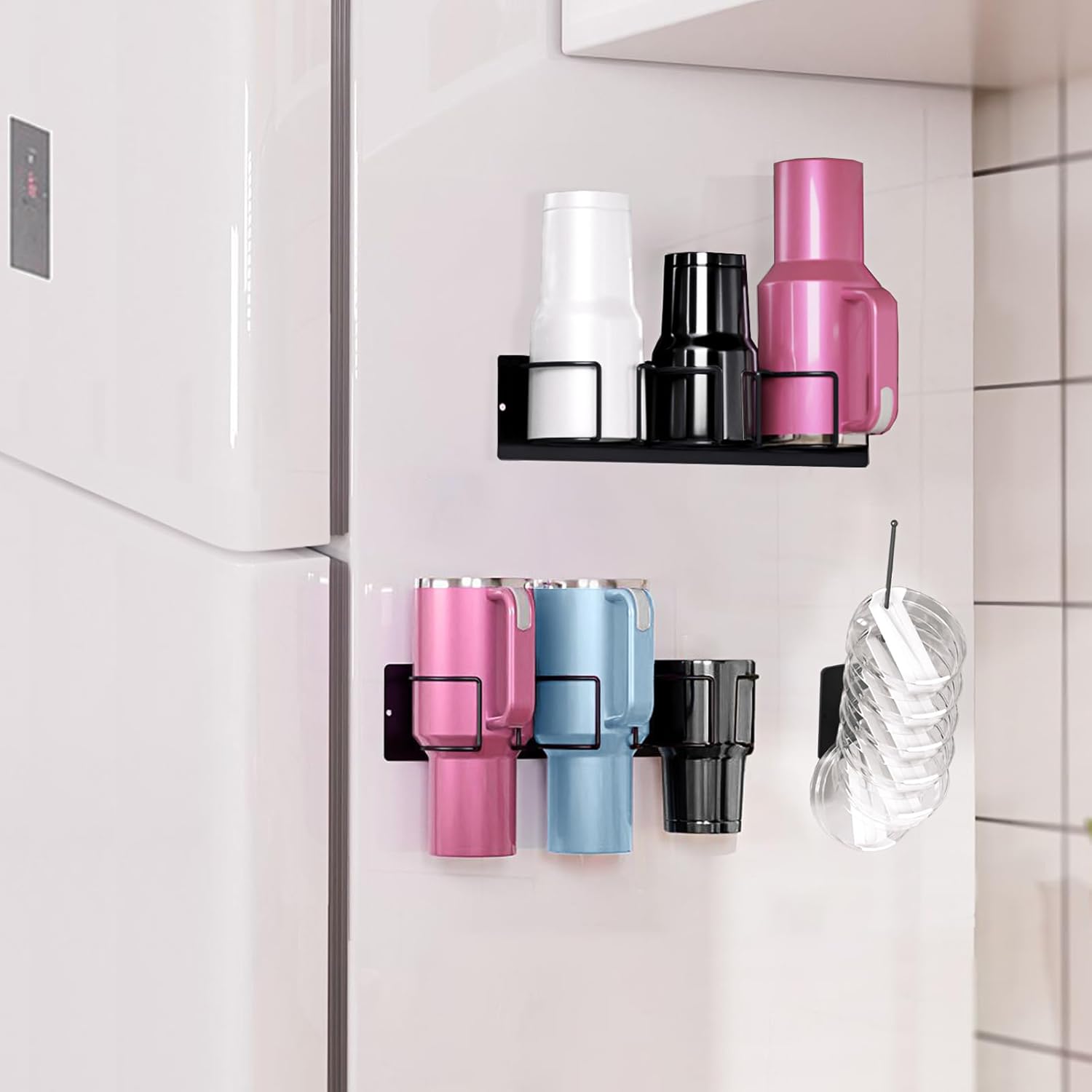 Water Bottle Organizer Holder for Stanley 40/30/20 oz, 2 Pack Strong Magnetic Cup Accessories, Kitchen Fridge Cabinet Metal Storage Rack, Easy Installation (Black, 6 Bottles) (black)