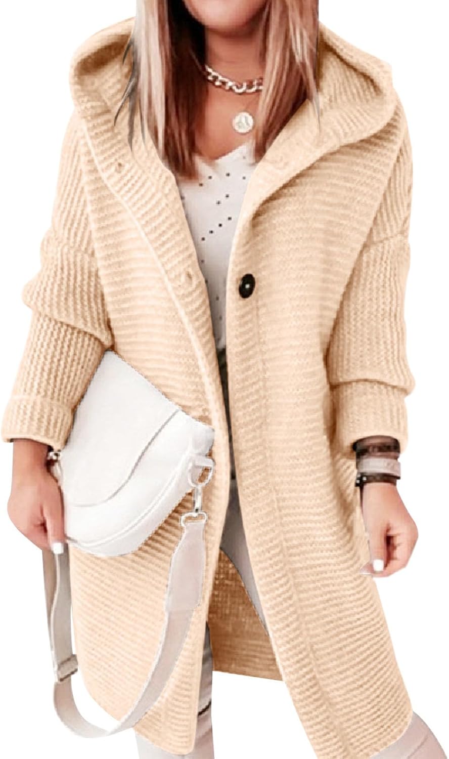 Long Hooded Cardigans for Women,Button Front Chunky Knit Oversized Long Sleeve Casual Sweater Fall Winter Coat