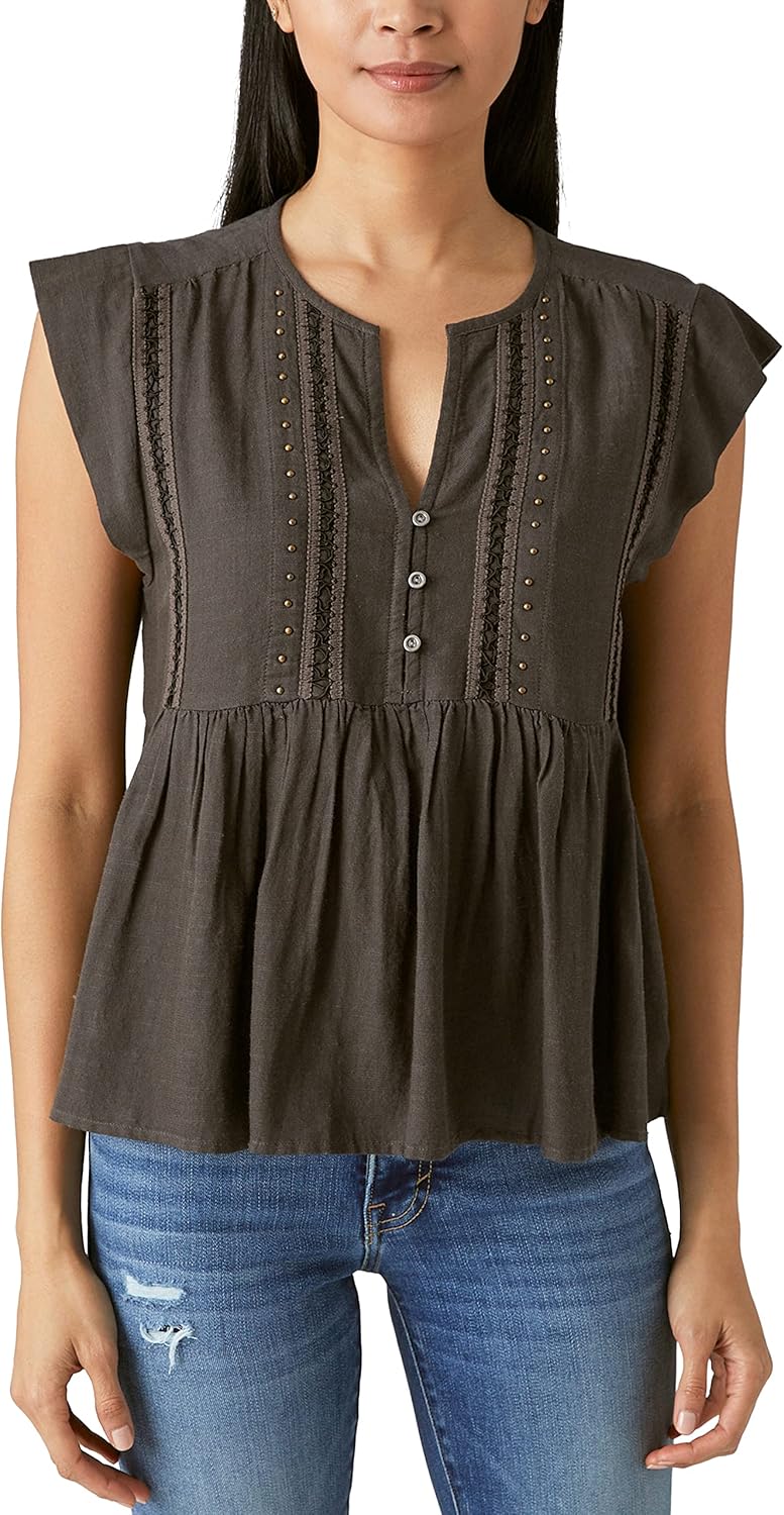 Lucky Brand Women's Studded Babydoll Top
