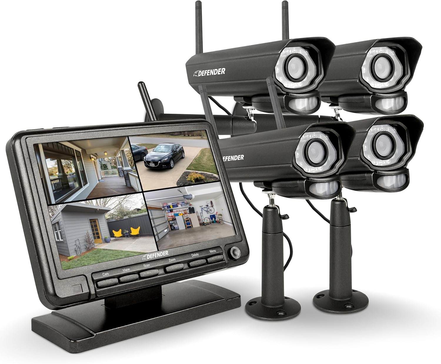 Defender PHOENIXM2 Non WiFi Plug-in Power Security Cameras- for Home & Business Surveillance Indoor & Outdoor Bullet Cameras with 7 Inch LCD Display Monitor (4 Cameras)