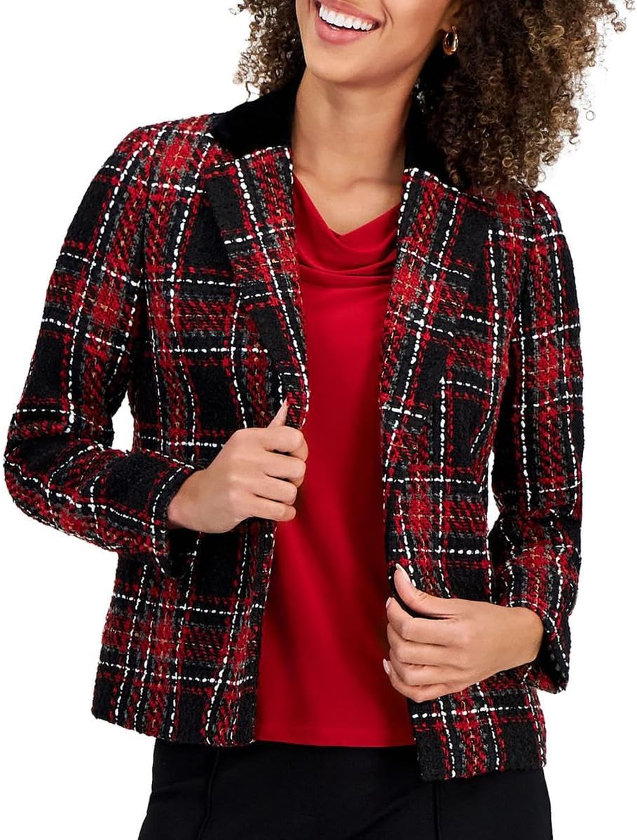 Kasper Womens Women's Tweed Four Pocket Open-Style Blazer