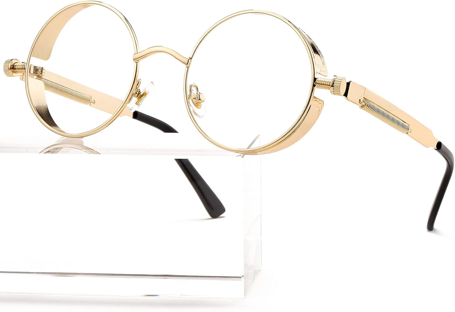 AIEYEZO Round Steampunk Sunglasses for Men Women Retro Gothic Sun Glasses Round Metal Frame Ladies Shades