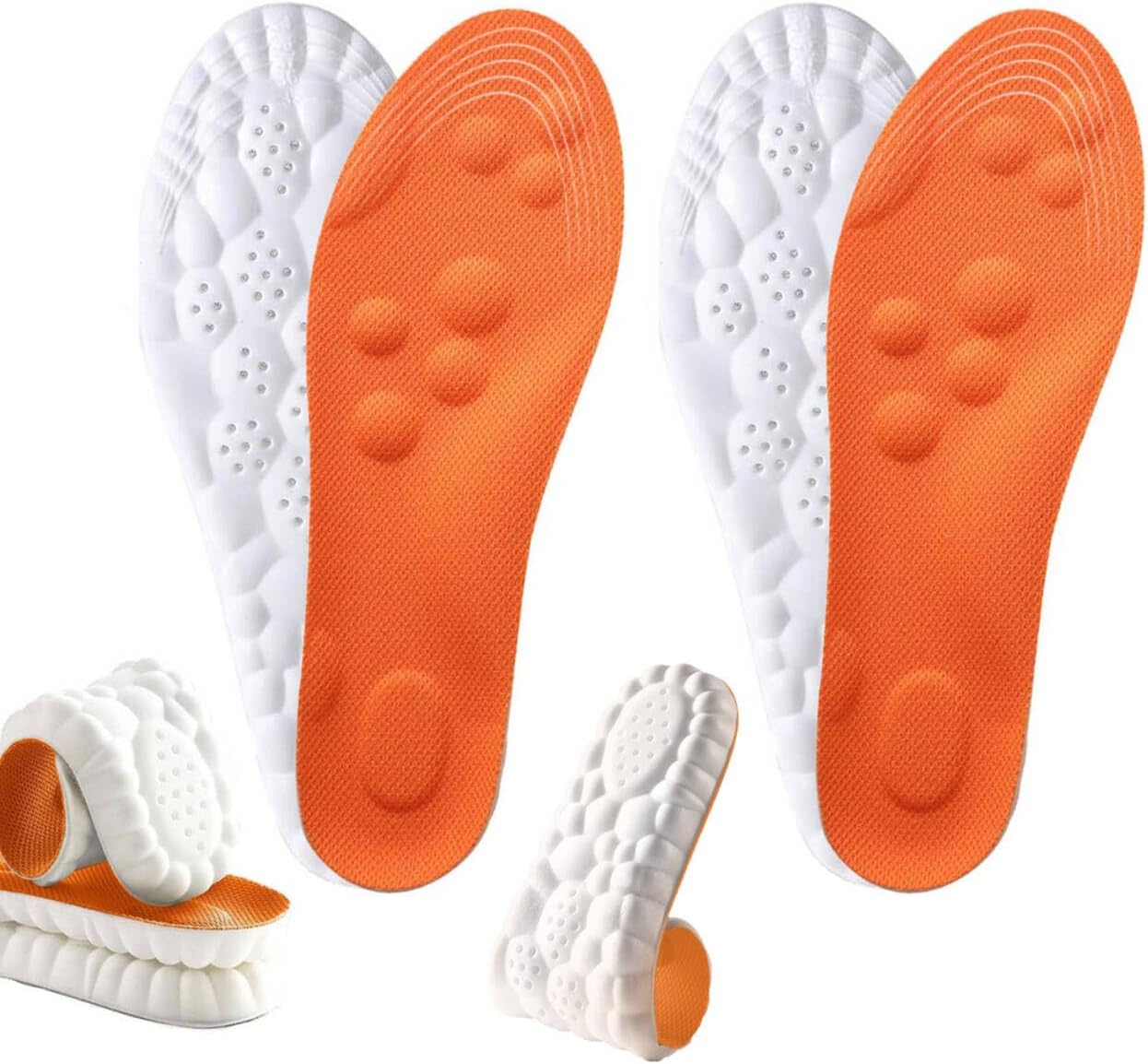 4D Cloud Insoles for Men Women, Breathable Memory Foam Cloud Massage Insoles, Enhanced Arch Support & Cushioned Comfort,Relief Foot Pain,Fits All Shoe Types(2 Pairs-Orange,Men 6-7/Women 7.5-8.5)