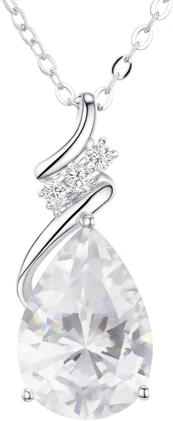 Birthstone Necklace for Women - S925 Sterling Silver Teardrop with Cubic Zirconia and Gemstones -Birthday Jewelry gift for her, Girlfriend, Wife, Mom on Birthday, Anniversary