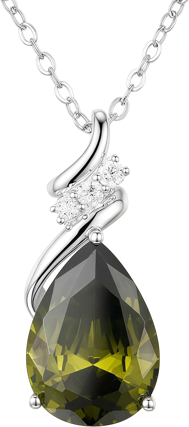 Birthstone Necklace for Women - S925 Sterling Silver Teardrop with Cubic Zirconia and Gemstones -Birthday Jewelry gift for her, Girlfriend, Wife, Mom on Birthday, Anniversary