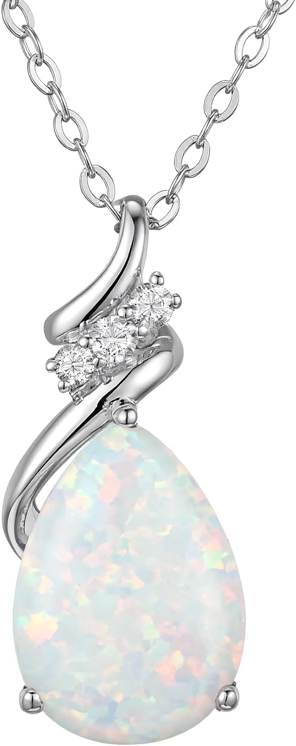 Birthstone Necklace for Women - S925 Sterling Silver Teardrop with Cubic Zirconia and Gemstones -Birthday Jewelry gift for her, Girlfriend, Wife, Mom on Birthday, Anniversary