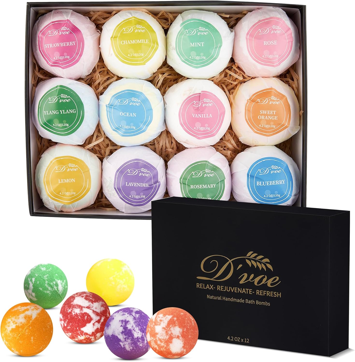 Bath Bombs Gift Set, XXL 4.2oz 12Pcs. All Natural Handmade Bathbombs With Organic Essential oils, Moisturizing Shea Butter/ Bath Salts for Relaxation/ Stress Relief .Great for any Occasions