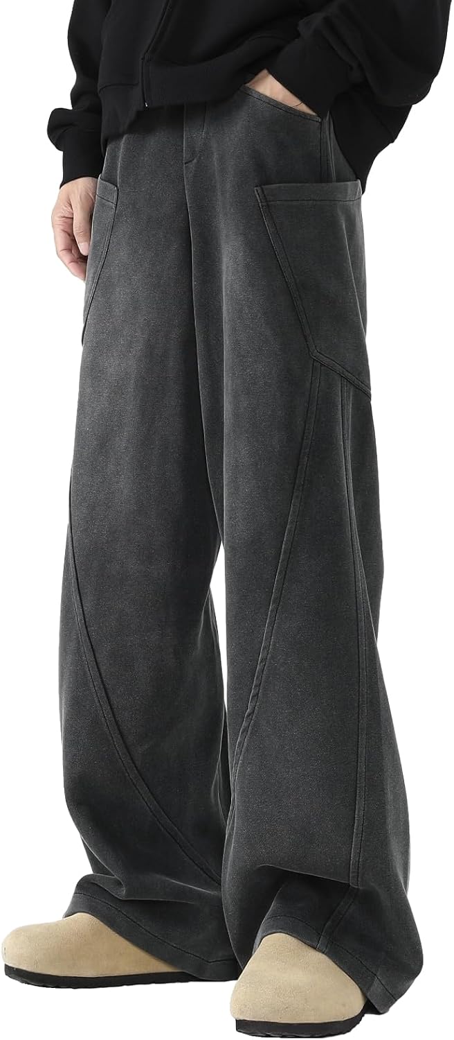 Men's Teen Y2k Baggy Wide Leg Sweatpants Acid Wash Loose Drawstring Elastic Waist Track Pants with Pockets